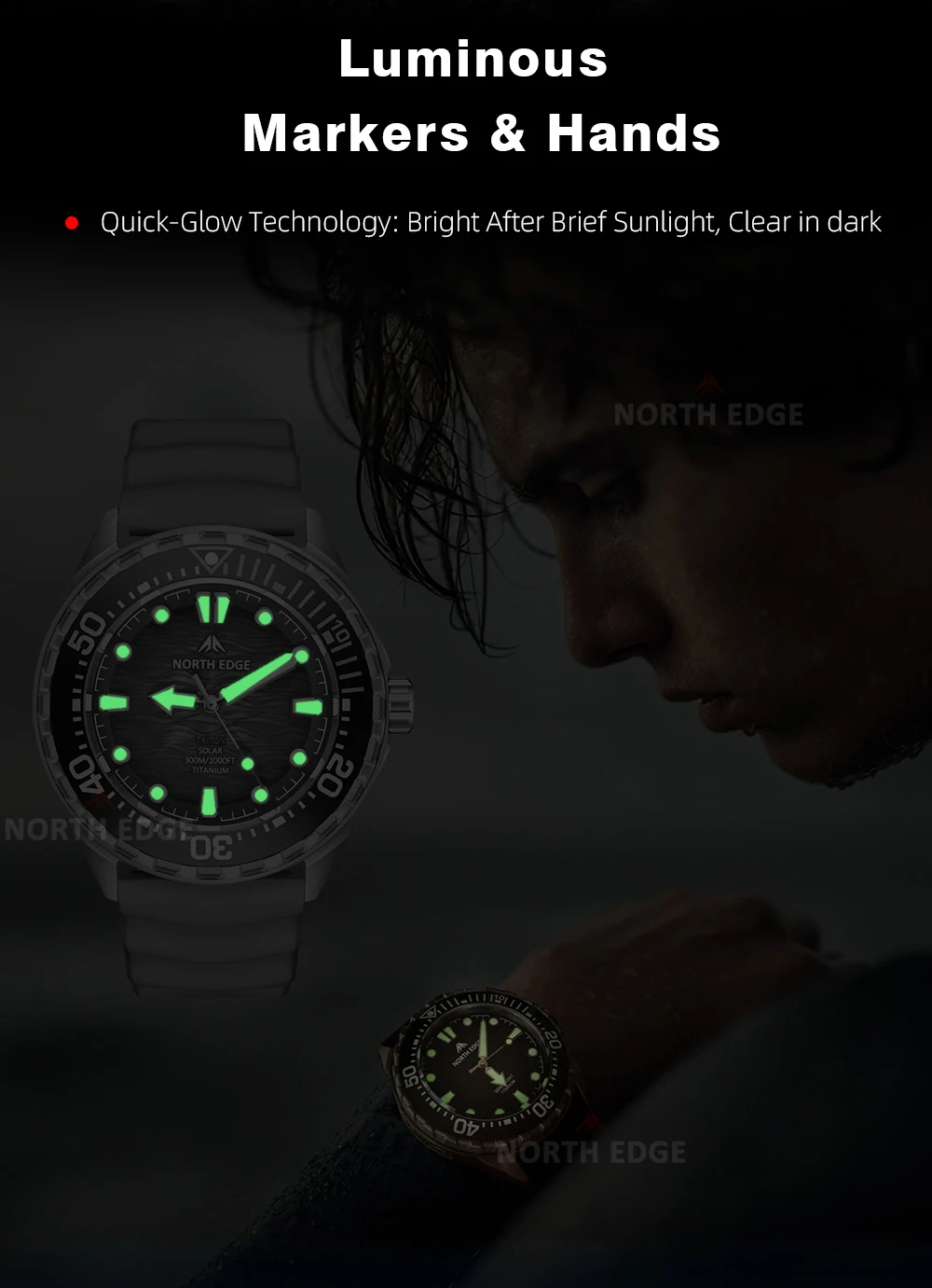 Watch - NORTH EDGE TRITON TI Titanium Stainless Solar Powered Diving Watch Luxury Quartz Watches For Men 300M Waterproof 180+ Day Power